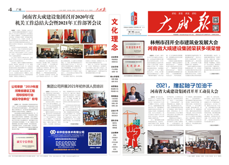 "中國建筑業最具成長性百強企業"、"全國優秀施工企業"、"河南省建筑業綜合實力前20強"、全國建筑業精品網站