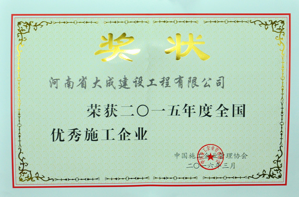 • "中國建筑業(yè)最具成長性百強企業(yè)"、"全國優(yōu)秀施工企業(yè)"、"河南省建筑業(yè)綜合實力前20強"、全國建筑業(yè)精品網站