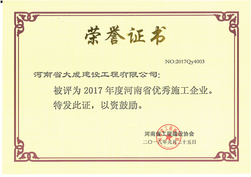 • "中國建筑業最具成長性百強企業"、"全國優秀施工企業"、"河南省建筑業綜合實力前20強"、全國建筑業精品網站