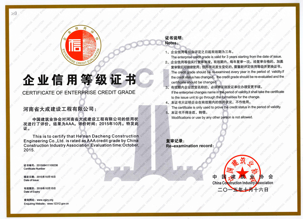 "中國建筑業最具成長性百強企業"、"全國優秀施工企業"、"河南省建筑業綜合實力前20強"、全國建筑業精品網站