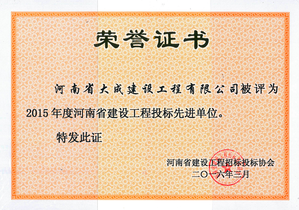 河南省工程建設(shè)投標(biāo)先進(jìn)單位